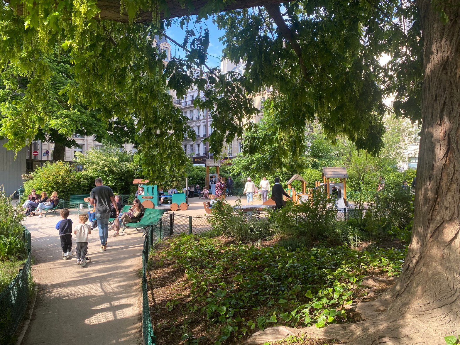 Parents citadins de jeunes enfants (car j'imagine que ceux qui habitent au grand air ont bien mieux à faire), il faut le dire, on s’y colle tous les week-ends. Je vous repère : les encore endormis, les sportifs, les déprimés, les solos, les soulés, les montessori… au square le samedi matin. Et pour cause : la marmaille a besoin de courir, de grimper, de taper dans un ballon, de regarder des canards, quand elle ne demande pas des bonbons, des tours de manège, des glaces… Il m’est arrivé, en plein hiver, congelée dans une aire de jeux déserte, de me demander pourquoi on s’imposait ça. Il n’y a même pas de débat, en vérité : on y va sans sourciller, qu’il pleuve ou qu’il vente. Je me souviens être allée seule au Jardin d'Acclimatation (le seul parc d'attractions de Paris) avec mon fils aîné, genre dix jours après l’accouchement de mon deuxième – le corps donc totalement en vrac. Il faisait une chaleur écrasante. Et je crois même que j’avais embarqué la trottinette. Quelle folie.
